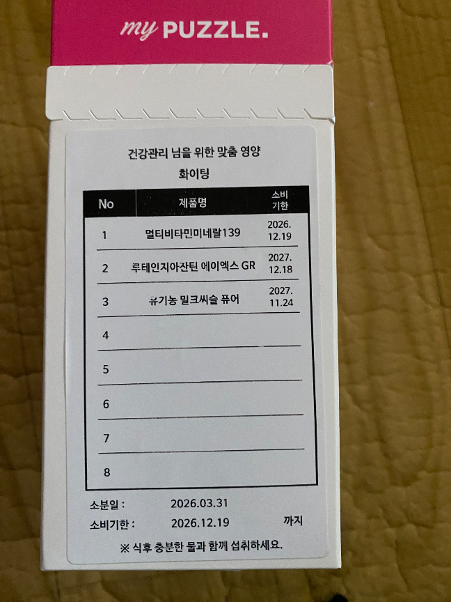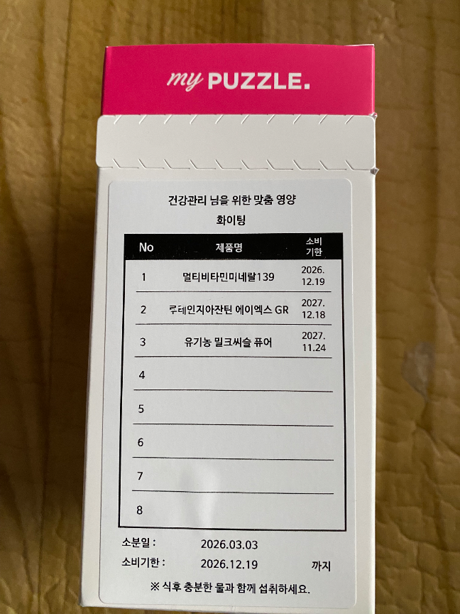 마이퍼즐 서비스는 개인맞춤형 건강기능식품 법규에 따라